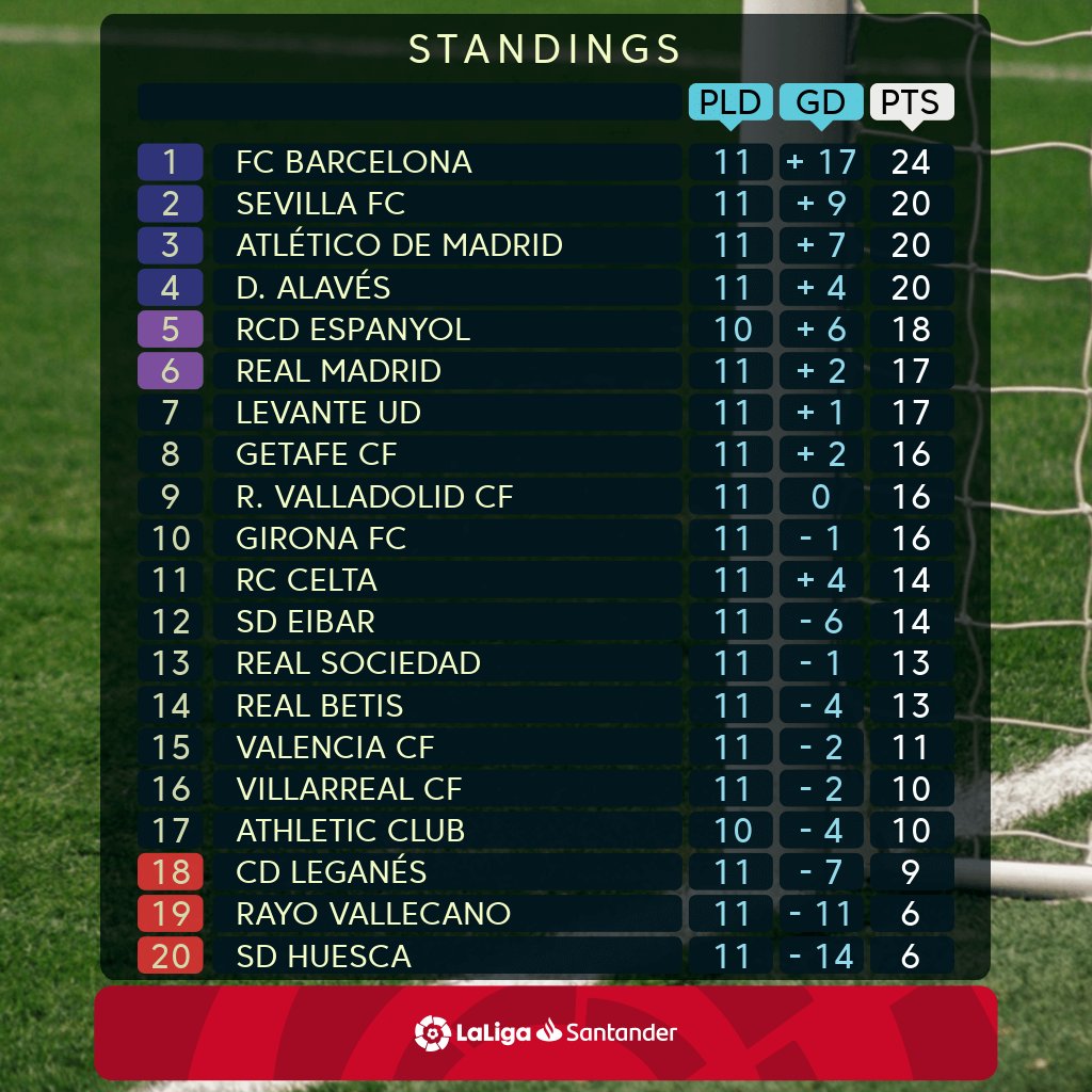 La liga tabelle 2020. Consulta en directo la tabla de la clasificación de LaLiga Santander completa y actualizada al segundo en la web oficial de LaLiga. Won 3 - 2 against Granada on September 23rd 2021. Also get all the latest updates on La Liga points table standings live scores results latest news much more at Sportskeeda.
